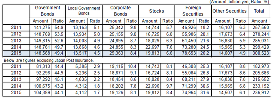 资料来源:日本寿险业协会(The Life Insurance Association of Japan)2016年度报告(Life Insurance Fact Book(2016))。