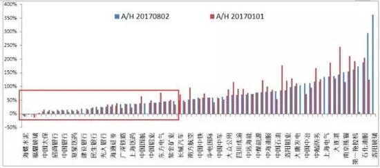 所以多空配对交易,在过去2年搏差价扩大的反而比搏缩窄有更多的入场机会以及值博率,而且适用于南下资金偏好不同的股票。用数据说话,2017年1月和8月的A/H股对比,不难发现差价较小的股份(红色框)到了八月份价差普遍扩大,相反差价较大的股份差价扩大或缩窄的规律并不明显。