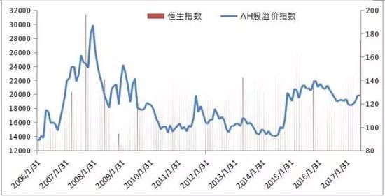 如果花费几分钟时间观察AH股溢价指数,不难发现近年的趋势并没有缩窄反而在2017年还扩大了。指数往往在A股牛市的时候(如2008年和2015年)增加,熊市的时候减少。因此单纯因为A/H存在价差,在扩大的时候到港股市场乱买一通,很可能买到了牛市末期,所谓的差价策略也只是深坑。