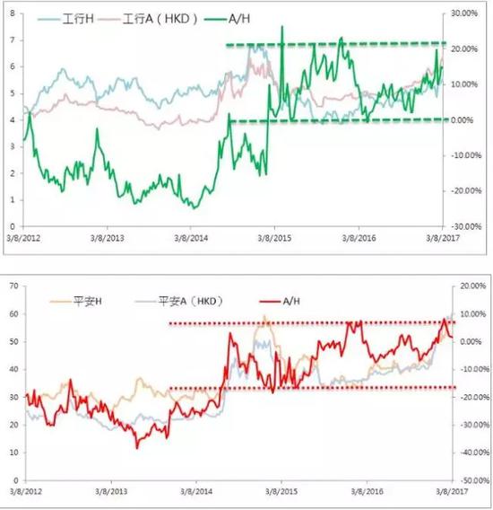 三家公司对应的A/H股差价表现如何?从下面四个图就可以很直观感受到。工行、建行和平安的A/H差价在沪港通开通后,差价从原本的折价出现逆袭(当然很大程度是因为A股牛市的原因)。除此之外,南下资金热捧的港股通标的套利区间非常稳定, A/H股溢价往往在25%左右,换言之无论是正向套利还是反向套利都存在操作的机会。