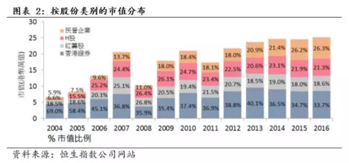当前,HSCEI只包含H股,并不能完全代表在香港上市的中国企业表现。根据恒生指数公司数据显示,截至 2016 年底H 股公司只占在香港上市的中国企业(包括H股、红筹股、及民营企业)约三分之一的总市值和三分之一的总成交额。