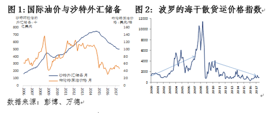图1:国际油价与沙特外汇储备 图2: 波罗的海干散货运价格指数