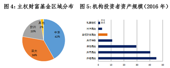 图4:主权财富基金区域分布 图5:机构投资者资产规模(2016年)