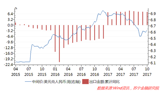 综合来看,在人民币汇率调整压力充分释放的背景下,四季度和2018年的出口形势,将主要受外部需求变化的影响,当前全球主要经济体均正处于同步复苏趋势中,外部需求可期,预计未来我国的出口仍将延续复苏的态势。