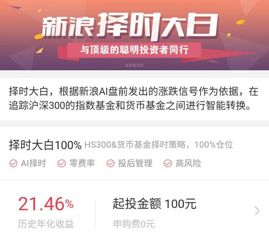 择时大白是一款基金组合策略产品,关于择时大白的介绍请参见前篇:《新浪择时大白 小而美的AI智投基金》