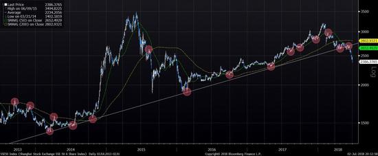 在市场共识的一片“抄底”之声中,中国市场自2014年中见底以来的上升趋势已经被明显破坏了。为遏制房地产泡沫而出台的更多房地产限购措施,以及PSL流动性收紧,使一位理性的投资者很难认同市场已“最终触底”的共识。