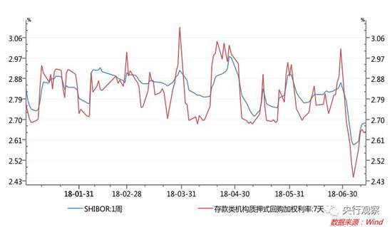 银行体系的货币较为宽松。2017年12月召开的中央经济工作会议为2018年货币政策定了基调,会议要求“稳健的货币政策要保持中性,管住货币供给总闸门,保持货币信贷和社会融资规模合理增长。” 今年一季度《货币政策执行报告》中关于流动性的表述为“实施好稳健中性的货币政策,注重引导预期,保持流动性合理稳定。”6月27日,中国人民银行召开了2018年第二季度货币政策会议,会后的公报中关于流动性的表述变化为“要松紧适度,管好货币供给总闸门,保持流动性合理充裕”,从“管住”到“管好”、从“稳定”到“充裕”,似乎可以窥探到一些微妙的变化,引发了市场一阵热议,而货币政策实践也确实在管好货币总闸门、保持流动性合理充裕。