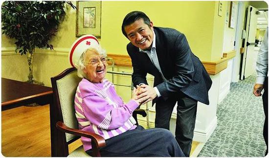 第四个镜头:2009年,陈东升和泰康人寿董事会成员到美国费城附近的万柳(Willow Valley)养老社区考察,看到了大型的运动中心、文化中心、歌剧院和齐全的医疗康复设备,既有别墅也有单间公寓。他和一个在跑步机上健身的老头交流,一问已经95岁了。他进到一个练功房,一群老太太花枝招展、涂脂抹粉地在练平衡,练稳定性,一问,有个老太太说84岁了。他还看到一个百岁老太太戴着“二战”时的护士帽,重温青春时光,开怀大笑。他被这些老人对待生命的态度震撼了。“我们中国老年人基本上都是为了后代,我们说让老人吃一点,老人说留给孙子,让老人穿一点,也说留给孙子。我们一定要改变他们这种生活方式,把人寿保险和养老社区相结合。”