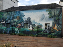 图3-7 张麻车村3D墙绘六石街道积极植入影视、工艺美术、旅游、休闲文化等产业,在这些新兴产业的支撑下,美丽乡村建设迈入新台阶,经济发展走向新轨道!