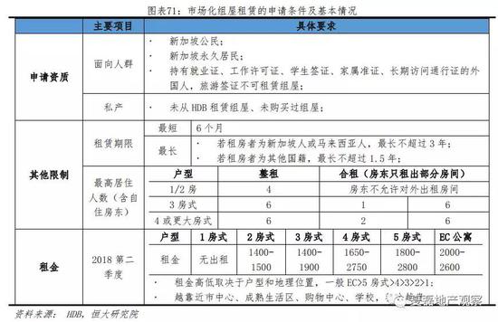 市场化租赁主要面向在新加坡工作或学习的外国人,房屋类型多元,租金水平也较高。新加坡政府的住房政策主要惠及本国公民及永久居民,而在新加坡工作或学习的外国人大多靠市场化手段解决住房需求。租赁房源类型多元,既包括当地居民出租的组屋,也包括大量私人住宅,租金根据市场供需情况、地理位置、户型大小等确定,远高于HDB提供的廉租房。其中组屋租赁受政府监管,在租房者资质、租赁期限、居住人数等方面均有严格限制。