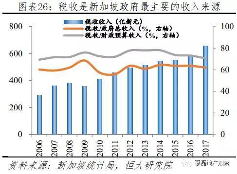 新加坡房地产相关税种包括印花税、财产税和所得税,2017年前两项合计91.2亿新元,占总税收13.9%,占财政预算收入9.8%。