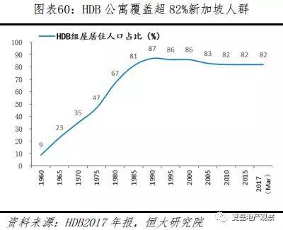 覆盖面广,超82%新加坡公民居住在政府提供的组屋中。自1960年组屋开始供应以来,覆盖人群持续增加。截至2017年,新加坡共修建HDB组屋114.6万套,现存102.6万套,占新加坡124.1万套住房中的72.8%,覆盖人群由1959年的8.8%逐年提高,在1990年达到峰值87%,后因私人住宅需求增加有小幅下降,但都稳定在80%以上,2017年为82%。