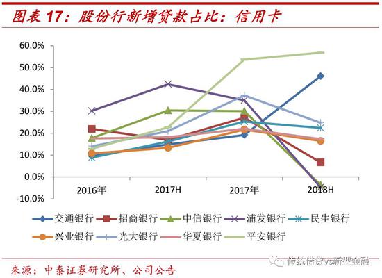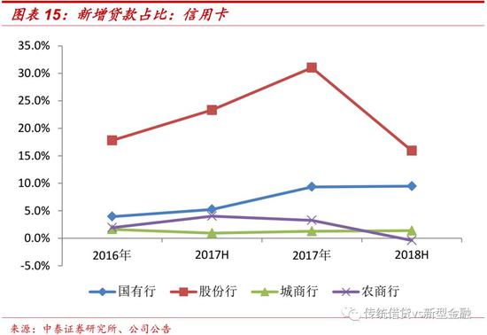 资产质量较稳定,业务增速灵活调整。从整体来看,2017年新增贷款中信用卡的占比明显提升,2018年上半年,股份行的新增贷款中信用卡占比回落明显。