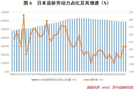 一方面,日本居民的生育意愿在走低。这从日本人口出生率的变化走势便可窥探一斑。上世纪70年代之前,日本人口的出生率一直维持在较为合适的水平,而这也是日本经济快速发展的时期。不过,这种人口格局进入上世纪70年代之后开始被打破。wind数据显示,1973年起,日本的人口生育率几乎一直处于下滑通道,从19.4‰一路跌至2016年的7.8‰(参见图5)。