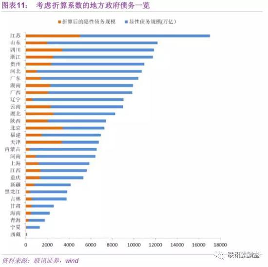 我们在计算时,可以根据显性债务率(显性债务/地方政府综合财力),先将各省分组,然后每组给予不同的折算系数。