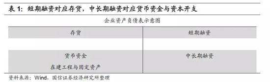 为便于分析社融与企业微观经营行为之间的逻辑关系,我们把社融划分为企业短期融资、企业中长期融资和个人贷款三大类,并重点研究前两者。我们假设,企业获取短期融资、中长期融资有不同的经营目的。