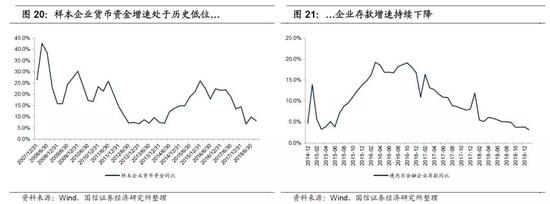 我们预期企业中长期融资代表资本开支增加,但从样本企业长期借款、发行债券与股权融资同比增速和在建工程与固定资产同比增速的对比来看,两者之间相关性不强,差异主要来自货币资金科目的变动。在2011-2013年,样本企业的固定资产投资多但中长期融资少,主要是企业动用了存量货币资金;而在2015-2016年则相反,企业融入了较多中长期资金却没有进行资本开支(主要发生在城投企业中)。这说明在分析社融时,我们需要密切关注企业存款这一蓄水池的变动。