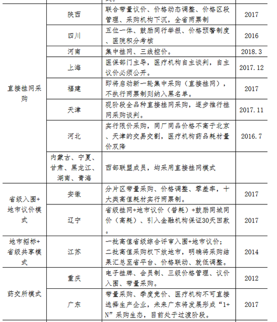 基于上述政策,近年来,我国各地政府陆续推出高值医用耗材的统一采购工作方法,医院自主采购比例显著降低。目前,集中采购主要可分为招标采购、挂网采购、谈判采购、联合采购四种方式,各地在实施的过程中也结合了自身的实际情况,发展出各具特色的集中采购模式。