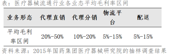 5) 毛利率高。为弥补长账期带来的利息支出,普通器械配送毛利率比药品配送高2-5个百分点,若在配送基础上开展医院打包业务或者代理业务,毛利率甚至可以达到25%。