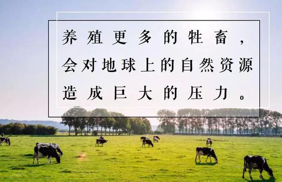 据人口学家预计,到2050年,全球人口将从现在的75亿增长到100亿。要养活地球上更多的人口,意味着我们需要养殖更多的猪、羊、牛等牲畜,但它们会对地球的土地、水、空气等自然资源造成巨大压力。