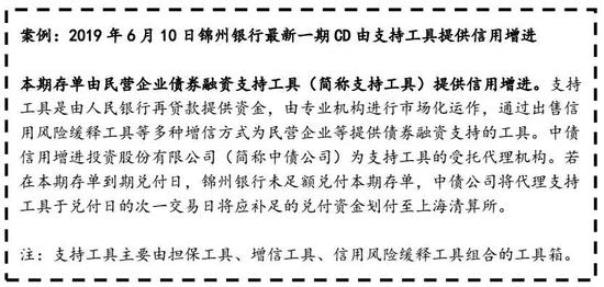 方法二:通过金融工具定向救助问题银行的流动性。对锦州银行等中小银行发行同业存单提供民营企业债券融资支持工具以进行增信。支持工具是由人民银行再贷款提供资金,由专业机构进行市场化运作,通过出售信用风险缓释工具等多种增信方式为民营企业等提供债券融资支持的工具。