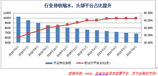 当前,网贷行业在持续缩水,集中度继续提升,十大头部平台待收占比超过46%,头部平台的影响愈来愈大。2019年6月末,陆金服借贷余额984亿元,行业占比14.32%。