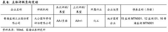 本期主体评级负向级别调整的企业共1家,涉及化工行业,为地方国有企业。本期债项评级调低的共有1家企业的2只债券,为主体评级负向级别调整的企业。