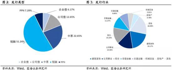 发行行业方面,本期信用债发行行业主要包括建筑装饰、公用事业、综合、非银金融、交通运输、机械设备、房地产。发行金额占比为19.17%、15.46%、15.23%、11.27%、8.8%、5.91%、5.78%。