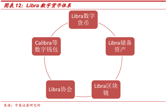 Libra具有完整的数字货币体系,由多个要素组成。(1)数字货币Libra。一种可以在全球范围内使用的数字货币,具有稳定、低通胀的特点,致力于成为数十亿人的支付工具。(2)Libra 储备资产。Libra 数字货币以储备资产作为基础支持。储备资产为一篮子货币的安全资产,预计将包括美元、英镑、欧元、日元等法币的现金银行存款和高流动性的短期政府债券,最大限度地降低币值波动风险。(3)Libra 区块链。Libra 数字货币的底层架构,具有高吞吐量、低延迟、安全可靠、可扩展的特点。Libra 区块链致力于成为金融服务的基础设施,未来将提供更加丰富的金融服务。(4)Libra 协会。一个独立的会员制组织,负责管理Libra 区块链和储备资产。协会成员将以民主、透明的方式管理和监督Libra 区块链协议和网络的发展,并对储备资产进行管理。(5)Calibra数字钱包。Facebook成立了名为Calibra的子公司,其目标是使用Libra 区块链提供金融服务,其中第一个产品就是Libra的数字钱包。Calibra数字钱包有独立的APP,同时也可在Facebook Messenger和WhatsApp中使用。Calibra不是唯一的Libra数字钱包,其他服务商业可开发Libra的数字钱包。