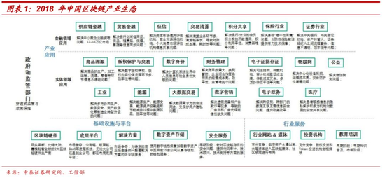 金融行业在区块链技术应用中占有半壁江山。区块链技术已在各行业有广泛的应用项目落地,包括金融行业及实体经济部门。实体经济部门应用的场景包括电子存证、商品溯源、知识产权保护、物联网、电子政务、能源、医疗等。金融行业的应用包括供应链金融、贸易融资、资产证券化、票据交易、积分兑换、审计等。此外,区块链技术来源于比特币,目前也是数字货币的基础技术之一。