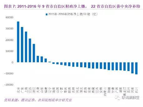 社科院财政审计研究室曾对2011-2016年全国31个省市自治区的财力贡献进行了测算。结果显示,仅9省(市、自治区)对国家财力有净贡献,共计14.8万亿元,包括8个东部地区省份(直辖市)和辽宁省,而其余22个省市自治区均为接受中央净补助,共计获得12.1万亿元,其中绝大部分为非东部省市自治区。这表明在当前的财政格局下,主要是由东部地区在“补贴”其他经济相对落后的地区。