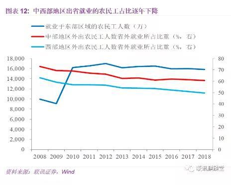 我们也可以观察到,2010年流入东部地区的农民工数量开始趋于稳定,劳动力供给跟不上经济发展的需求,这加剧了东部的用工荒现象。