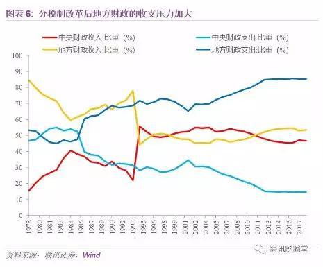 分税制改革后,将税种划分为中央税、地方税以及央地共享税,一些重要税种的收入流向中央,使得中央与地方财政关系迅速逆转。1994年分税制改革当年,中央财政收入占比便跃居至56%,并且此后该比例一直保持相对稳定。
