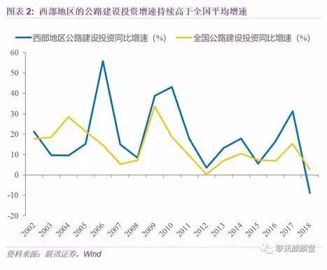 比如西部地区因地理环境复杂,导致交通状况长期以来都大大落后于全国其他地区,这成为西部地区经济发展的一个制约因素。因此,西部大开发战略中极为强调交通基础设施建设,2005年以来西部地区的公路建设投资大多数时候都保持两位数的增速,而且持续高于全国平均水平。同时,考虑到西部地区生态脆弱,西部大开发战略中也出台了非常多的诸如退耕还草、还林等生态保护措施。