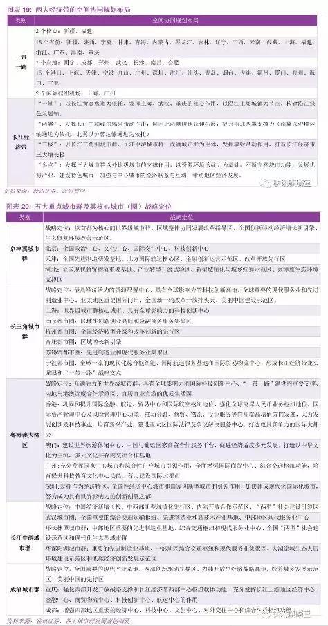 而新型空间布局形式突破了固有的四大板块布局和省际行政区划,通过缩小区域政策单元,提高了区域政策的精准性。无论是城市群还是经济带,目标都是实现跨区域协同,通过错开地区或城市战略定位来实现差异化竞争和优势互补。