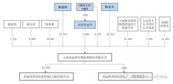 美迪西的共同实际控制人为CHUN-LINCHEN(曾用中文名为陈春麟)、陈金章以及陈建煌。
