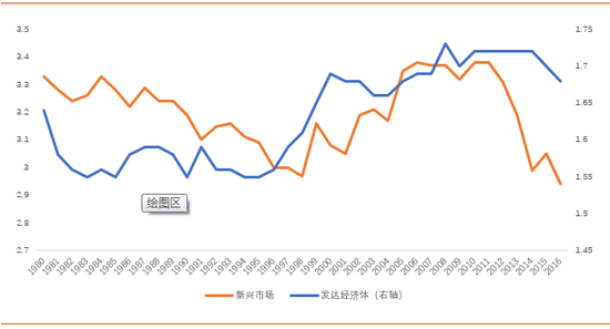 产业、区域不平衡,商业活力和社会稳定存挑战。2019年二季度,美国制造业占GDP比重降至11%,创1947年以来的新低。事实上,“美国制造的回归”一再成空只是发达经济体制造业衰落的缩影,产业结构的失衡对于内生经济动能的抑制日益凸显。比如,作为服务业占比显著超过制造业的发达经济体,本世纪以来其第三产业就业相对第二产业比重仍在不断上升,进而通过压低核心服务通胀中枢导致其长期通胀系统性低于央行的目标(详见附图)。不仅如此,可贸易的制造业凋敝引发贸易争端,在发达经济体与劳动力相对充裕的新兴市场贸易尚远低于其内部贸易规模的情况下,蚕食了潜在的全球化红利。除了产业发展的不平衡,发达经济体国内区域间的不平衡正重新对其长期增长潜能构成巨大挑战。IMF的研究表明,对于发达经济体,其国内区域之间的长期失业率与经济表现之间呈现出明显的负相关,区域之间的分化不仅抑制了生产要素的配置有效性,也引致了健康、教育、人力资本积累等方面的持续不平等,成为社会和政治动荡的重要原因。当前,尽管发达经济体国内区域间人均GDP差异相对较低,但过去十年来其相对新兴市场的这一优势正在明显缩小(详见附图)。从发达经济体内部看,美、英、德、法等重要经济体在国内区域相对平等程度方面都排位靠后(详见附图)。在当下不稳定的宏观环境中,随着总量型的刺激政策边际效用递减,这些国家内部脆弱的区域和特定劳动力市场将面临考验。