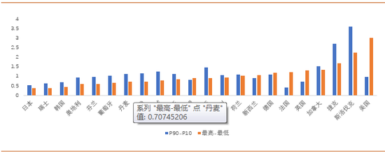 图3: 发达经济体国内区域间90/10分位实际人均GDP差异改善有限