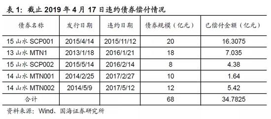 公司自2016年起通过自有的生产经营资金与债券持有人逐渐达成和解,也即债券持有人同意山东山水分期偿还违约债券。截止2019年3月31日,和解已全部达成,其中涉及债券本金68亿元,山东山水也在按时完成所有违约债券的兑付工作。到2019年4月17日时,公司已偿付34.78亿元,未兑付的债券本金33.22亿元。各债券偿付情况见下表:
