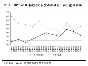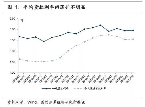 但从央行披露的一般贷款平均利率数据来看,实体经济融资成本下行效果尚不明显。2018年9月,公布的一般贷款(即不包括票据贴现、个人住房贷款)的平均利率达到近年顶部6.19%,而后有所回落,在6%左右徘徊,未见持续下行。尤其是2019年9月,一般贷款的平均利率较6月还反弹了2BP,主要是因为新发贷款中对公中长期贷款占比提高所致。如果剔除结构调整因素,我们估计同类贷款的利率也下行不多,未达到预期的政策效果。