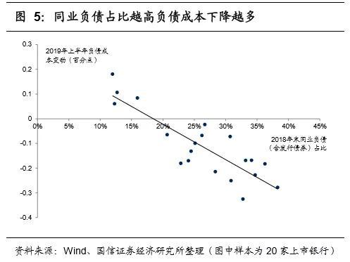 因此,这些直接利好于存款基础良好的“守方”的银行,使它们的存款相对优势进一步扩大。这一点完全不同于2018-2019年,即银行间市场利率下行,那么同业负债占比高的银行获得更为明显,存款基础好的银行作为同业市场的资金拆出方,反而受损。