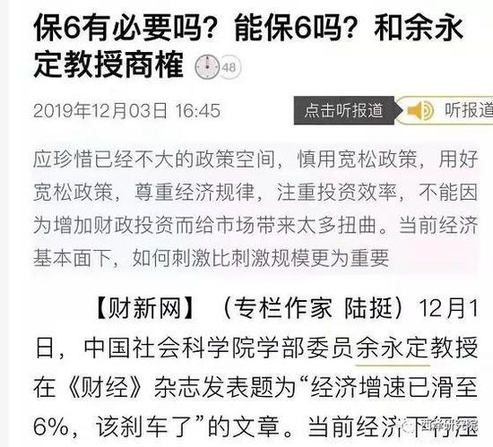 6%就真的那么重要吗?数字当然是抽象的,但数据背后的人员就业和企业经营状况却是实实在在。6%的速度意味着什么呢,和7%有什么区别?只是统计局的数字游戏,还是中国经济的真实写照?是不是中国这个经济体,如果不保持一定的增长速度,就会引发大批企业破产和工人失业?那么所谓的从高速度转为高质量,是不是必须付出一定的代价?速度和质量必须是替代的吗,没有了速度,质量能不能保障?