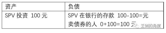 如果SPV去在二级市场上买债券。那么本SPV从另一位卖出债券的人那里买过来一笔100元的债券,那个卖债券的人得到100元,又存在本行:
