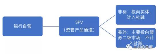 这些投放均可以统称为SPV投资,因为这些投放是银行自营先购买了一个SPV资管产品(或通道),然后再由SPV将资金投放出去。