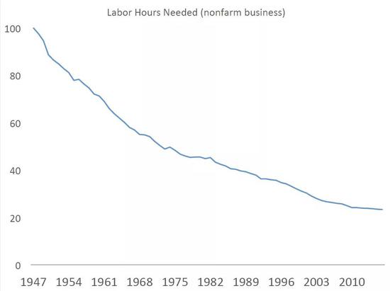 基尼系数上升的背后,反映出哪些经济学的情况?来看一下非农业务或者非农商业活动,生产率提高得非常大,单位时间工作内需要投入的劳动时间从100%已经降低到20%多,也就是说需要耗费的劳动时间减少了,意味着生产效率提升了。