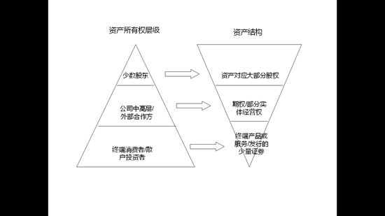 其实核心资产的所有权也是分层级的,对应的关系像是一对相互颠倒的金字塔: