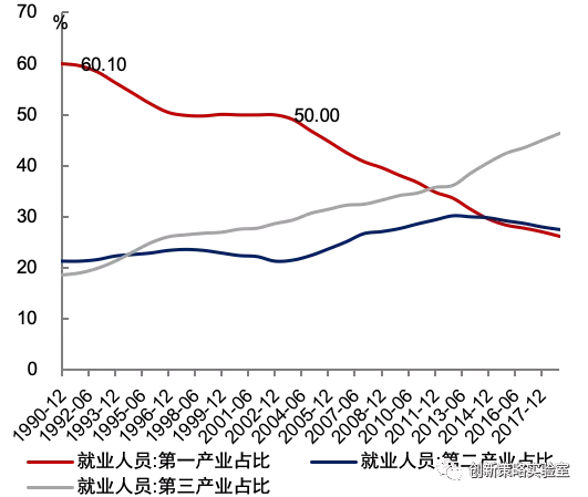 图4-1:三大产业就业人员结构变化