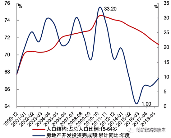 图5-2:劳动人口拐点出现后,房地产投资增速趋势性放缓