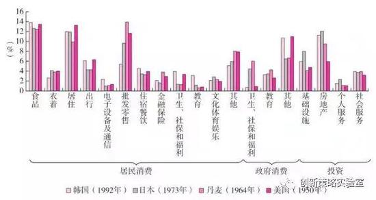 图2-4:人均GDP达到14000美元时各国终端产品结构对比