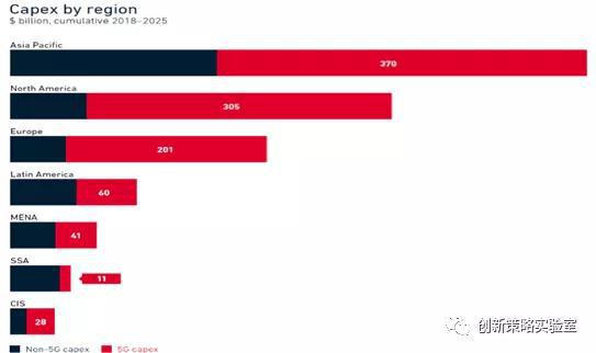 图8-1:各大区域移动通信网络投资额2018-2025(十亿美元)